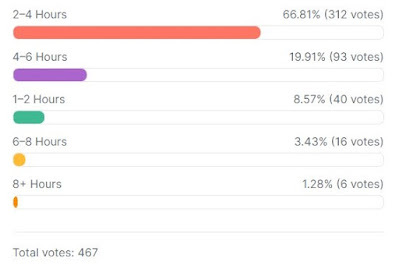 The third and final poll I'll discuss today is How long are your RPG sessions?, which yielded the following, based on 467 votes:
