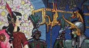 The characters' investigations initially seemed to hit a brick wall. No one they talked to, either at Kirktá's original Red Sword clan or the Temple of Belkhánu, had much information to offer them. Their only leads were a high priest back in Sokátis – two weeks travel from Béy Sü – and a scribe within the Court of Purple Robes in the imperial citadel of Avanthár. The scribe was close and more likely to know something, but getting to see him would be a challenge. Avanthár is not a place one simply turns up to unannounced or without a powerful sponsor.Fortunately, the newly-revealed Prince Táksuru, whom the characters had helped years prior, was willing to assist them. Though himself a candidate for the Petal Throne, he had openly expressed his hope that the characters, including Kirktá, would support him in his bid to become the next God-Emperor of Tsolyánu. He made arrangements for the scribe, Makésh hiVriyón, be brought to Béy Sü to speak with them about events more than 20 years prior, when Kirktá was first placed with his clan as a hidden heir.