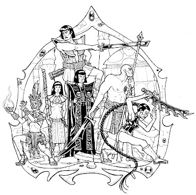 All of the foregoing characters played in the House of Worms campaign for at least a year. There are three others who played for less and I've not included them here, since their lasting impact is smaller. Presently, there are seven active characters: Aíthfo, Chiyé, Grujúng, Keléno, Kirktá, Nebússa, and Qúren. It's worth noting that, with the exception of Aíthfo, whose situation is unusual, there have been no player character deaths. To some degree that's because the characters avoid combat whenever possible, but it's also just a matter of luck. For a time, I refereed a second Empire of the Petal Throne campaign in parallel with this one and all but one of its starting characters died (and many more besides). Apparently, Lord Sárku smiles upon them, knowing that, in the end, he will claim them all anyway. Why not grant them a few more days upon Tékumel until then?