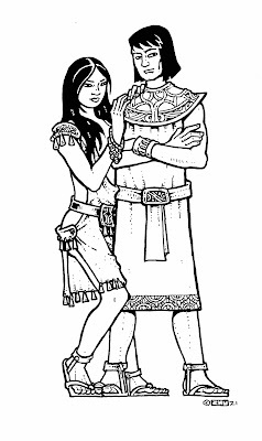 Standing in the middle, attired in the robes of a priest of Sárku is Keléno hiNokór (played by Doyle Tavener). Keléno prefers to keep his nose in books when he is able (which, sadly, isn't as often as he'd like). He developed an interest in demonology, after successfully – and unintentionally – summoning dread Srükárum to fight against an army of Ssú in the Dry Bay of Ssu'úm. Keléno has married three times in the course of the campaign, firstly to Hmásu hiTéshku, a priestess of Belkhánu, with whom he shares many interests. Here's a depiction of their wedding, also by Zhu Bajiee.
