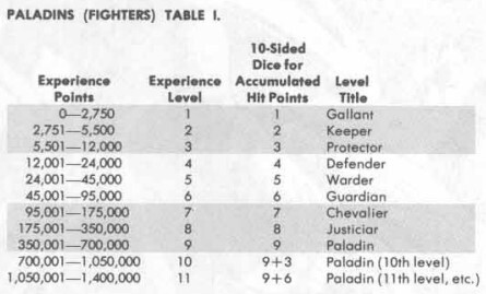 The paladin class first appeared as a kind of proto-prestige class to the fighting man in Supplement I to OD&D (1975). In that form, the class has no distinctive level titles. Those didn't appear until the stand-alone version of the class was presented in the AD&D Players Handbook several years later.