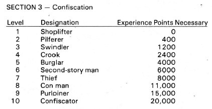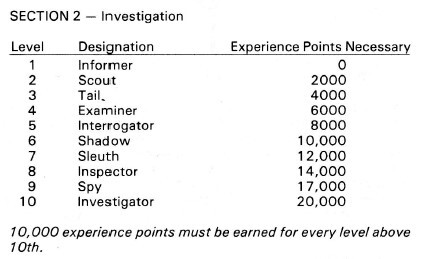 Empire of the Petal Throne is not, however, the only TSR RPG to include level titles. Another one that does so is Top Secret (1980) and its titles seem to have a lot in common with those of Dungeons & Dragons. Take, for example, the titles of the Investigation section: