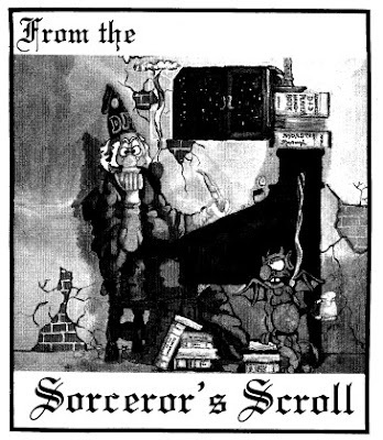 Way back in issue #11 of Dragon (December 1977), a new column appeared entitled "From the Sorcerer's Scroll." This was the image that accompanied the first appearance of the column.