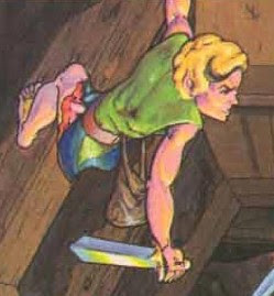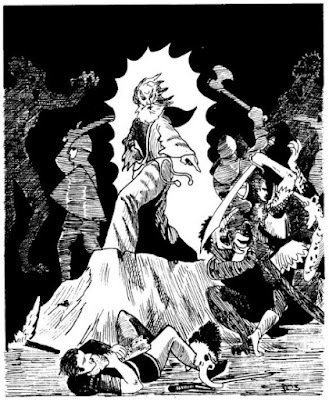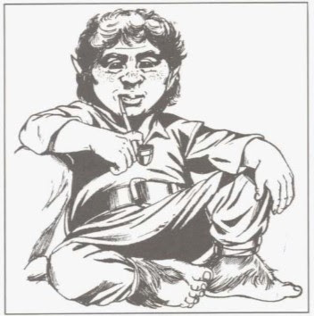 For today's look at the art of TSR era Dungeons & Dragons, I've decided to step away from monsters and instead focus on something a little different: halflings. Halflings, as everyone knows, originate in the works of J.R.R. Tolkien and have little or no antecedents in real world myth or legend. Despite Gary Gygax's well-known dislike of The Lord of the Rings, he was, however, a fan of The Hobbit, which introduced halflings – or, rather, hobbits – to the world. Both books were very popular among fantasy aficionados during the early 1970s, when D&D was born, so it's not at all surprising that Tolkien's diminutive creations should find their way into the game (along with several of his monsters). Of course, this usage was completely unauthorized and legally dubious. Saul Zaentz's Middle-earth Enterprises threatened legal actions against TSR for its usage of "hobbit" (and "ent" and "Nazgûl," I believe) in OD&D. Subsequent printings of the game, such as the one I own, changed "hobbit" to "halfling" and that term then became the common one in Dungeons & Dragons.