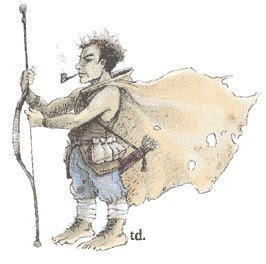 The earliest unambiguous illustration of a halfling comes in the AD&D Monster Manual by David Sutherland. Sutherland's depiction is broadly consonant with Tolkien's descriptions of hobbits, including their hairy feet.