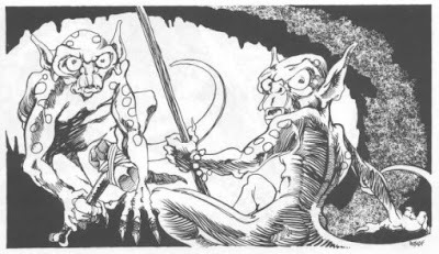BugbearsDrowElvesGnollsGoblinsHalflingsKoboldsOrcsTrollsAs you can see, there aren't even ten posts in this series, so there is plenty of scope for additional ones. My interest thus far has been in humanoid monsters and races, since they're often the ones whose appearances have varied the most over the years and that's fascinating. Of course, when their appearances don't vary, that's equally interesting and also worthy of examination.Before making any suggestions of possible additions, keep one thing in mind: the monster in question has to be commonplace enough to have appeared in multiple illustrations over the course of the TSR era of D&D. That means you won't be seeing "A (Very) Pictorial History of the Water Weird" or "A (Very) Brief Pictorial History of the Brain Mole" anytime soon – unless there really is some vast store of illustrations I've somehow overlooked. Stick to well used and iconic monsters and there's a better chance I can be swayed to write about them.