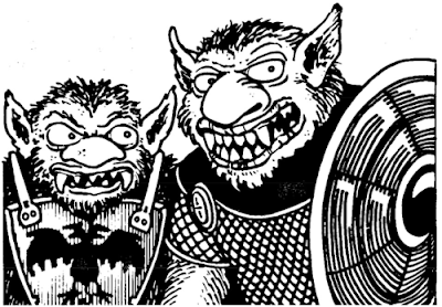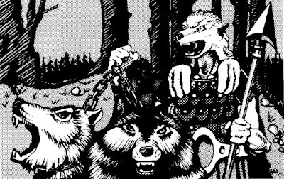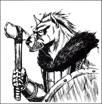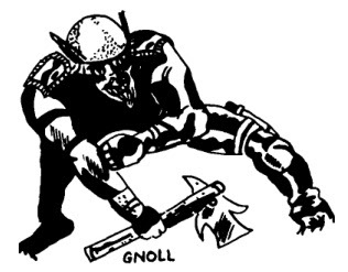 I find it fascinating how often a single artist set the terms for all those who followed him. As I look more closely at the depictions of various humanoid monsters in D&D, it becomes ever clearer how common this is throughout the game's early history. This is especially true, I think, for monsters, humanoid or otherwise, that are unique to Dungeons & Dragons. Since there was no prior tradition of them on which to draw, there was a good chance that the work of the first artist to draw a given monster would become definitive – the one later artists would look to for inspiration in their own work. That's clearly what has happened in the case of gnolls, even if, as in Harry Quinn's case, he introduced some variations of his own.