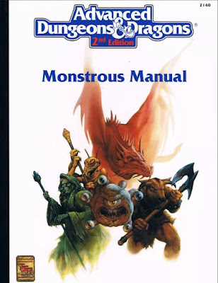 Those unfamiliar with the history of Second Edition can be forgiven for wondering why it took TSR four years to publish what is essentially an updated version of the venerable Monster Manual or why this version carries a slightly different title than its predecessor, unlike either the PHB or DMG, whose titles remained the same. The truth is that the Monstrous Manual was a do-over, TSR's attempt to fix the grave mistake of the Monstrous Compendium, released in 1989 along with the other 2e rulebooks. Rather than being a hardcover book, the Compendium was a D-ring binder designed to hold loose, three-hole punched sheets of monster entries. The Compendium was an interesting high concept, its actual implementation proved impractical o multiple levels, hence the need for the Monstrous Manual.