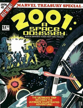 When I was a child, I owned a copy of the Marvel Treasury Special adaptation of 2001 by Jack Kirby. I can't recall how I acquired it, though I suspect it was a gift by a well-meaning relative who knew that I liked science fiction. I am certain that I read the comic before I ever saw the movie (which wasn't released on home video until 1980). The combination of Clarke's story, Kubrick's visuals, and Kirby's art was a heady mix and I was equally enthralled and frightened by what I saw in those large newsprint pages.