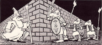 Here's another instance of a bugbear from the Monster Manual, this time drawn by Dave Trampier. I find this second piece interesting, because it's clear that Tramp is using Sutherland's illustration above as a model. These are clearly the same monster drawn by two different artists.