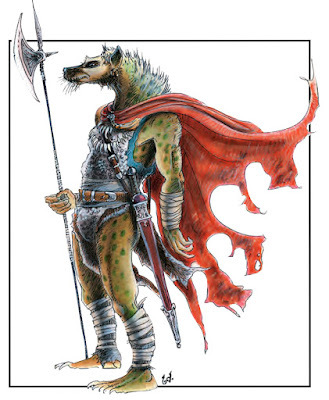 There's no use in fighting it. You'll be seeing more entries in what has inadvertently become a series for a few more weeks at least, perhaps longer. After last week's post on bugbears, which are a uniquely D&D monstrous humanoid, I knew I'd have to turn to gnolls this week, as they, too, are unique to the game. Perhaps I should clarify that a little. There is no precedent, mythological or literary, for the spelling "gnoll." However, the spelling "gnole" appears in "How Nuth Would Have Practised His Art Upon the Gnoles" from Lord Dunsany's 1912 short story collection, The Book of Wonder (as well as in Margaret St. Clair's "The Man Who Sold Rope to the Gnoles").
