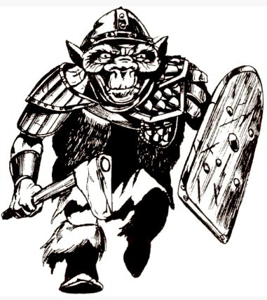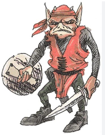 So far as I can tell, the very first depiction of a goblin in any Dungeons & Dragons product is this one from the original 1974 release of the game. Drawn by Greg Bell, this early goblin looks to me more like a deranged dwarf than a monster in the usual sense of the term: