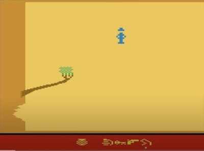 Raiders of the Lost Ark was not an easy win. Completing it successfully took a lot of thought and patience, not to mention above average hand-eye coordination, owing to its unusual control set-up and the finicky nature of said controls. In very broad strokes, the game recreated Indy's adventures in search of the Map Room that will lead him to the resting place of the fabled Lost Ark of the Covenant. The resting place of the Ark is randomly determined with each game reset, meaning that, should you fail, you can't necessarily carry over anything you've learned in your previous attempts to a new one. In addition, Indy requires the aid of certain items he can find hidden in various locations and these, too, are not always in the same location.