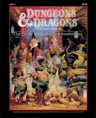 With all that in mind, I hope I can be forgiven for having very mixed feelings about The Book of Wondrous Inventions. Compiled by Bruce Heard from nearly fifty contributions by a wide variety of authors (more on that in a bit) and published in 1987, The Book of Wondrous Inventions is clearly intended to be a companion volume to The Book of Marvelous Magic, right down to its title. But whereas the content of The Book of Marvelous Magic was largely serious in tone – or at least no less serious than the standard lists of (A)D&D magic items – this new book was intentionally written with humor in mind. In his introduction, Bruce Heard writes the following: