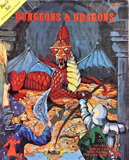 The first RPG I ever owned was the 1977 Dungeons & Dragons Basic Set, whose cover looked like this: