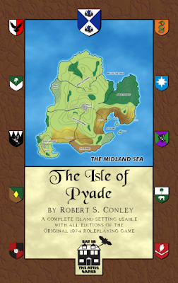 By the conclusion of How to Make a Fantasy Sandbox, the Isle of Pyade is now ready to use. However, many of its details – maps, NPCs, encounter tables, etc. – are scattered across its 180 pages, making it less suitable for use as a reference. Should you wish to make use of Pyade yourself, a better option might be the separate The Isle of Pyade book (available in electronic, softcover, and hardcover format), which takes all the relevant details and consolidates them in one place for greater coherence and ease of use. There's also some additional content in the form of artwork and color reproductions of the original maps Conley made in the late 1980s. If you're fan of RPG "archeology" as I am, this only adds to the value of The Isle of Pyade.