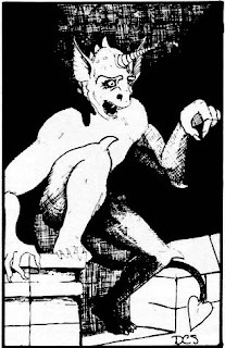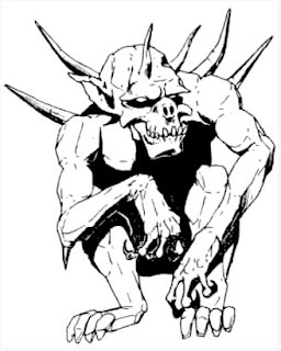 Sonny Scott's "Observations from a Veteran Gamer" is short piece of fluffy advice from a long-time player of AD&D who's also a stalwart of the RPGA. I don't mean to be so dismissive, but there's nothing here you've never heard a thousand times before. More interesting is Gary Gygax's "Why Gargoyles Don't Have Wings But Should." The article begins with classic Gygaxian boasting: he speaks of his association with Flint Dille ("Did you know his grandfather invented Buck Rogers?") and their upcoming joint projects. Then, he moves on to his dissatisfaction with depictions of both the gargoyle and the mar(l)goyle from Monster Manual II. The illustrations for both, Gygax says, lack wings and this should be corrected in "some future edition" of AD&D. For reference, here are the two illustrations in question: