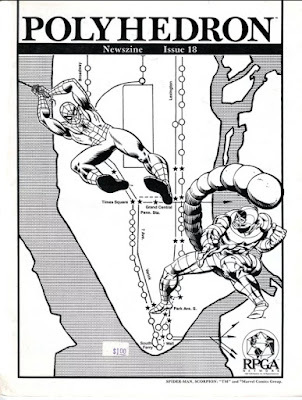 Serendipity is a funny thing. No sooner did I mention my childhood affection for Spider-Man than I find that issue #18 of Polyhedron (July 1984) features everyone's favorite web-slinger facing off against the Scorpion on its cover. This only makes sense, of course, since TSR's Marvel Super Heroes debuted around this time and was a big hit for the company. In fairly short order, it seemed as if there were nearly as many adventures being released for MSH as there were for Dungeons & Dragons, though my memory might well be faulty.