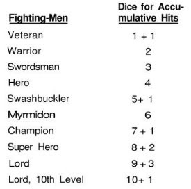 Recently, an acquaintance of mine asked a question about original, pre-Greyhawk OD&D (1974) for which I had no immediate answer: how are hit points determined when a character gains a level? That may seem like a very simple question, but consider the following chart from Men & Magic: