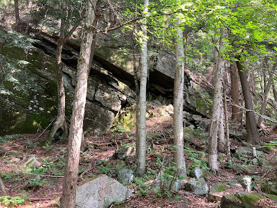 Another thing that struck me was just how dark the woods could become, even during daylight hours. The trees where I was hiking were quite tall and possessed large, leafy branches that obscured the sun more than I had anticipated. I could still see quite well, of course, but it was still far less bright than I would have expected, given conditions outside the forest. Combined with the silence of the place, save for the sounds of a few birds, the overall effect was genuinely eerie at times.