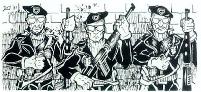 "Turnbull Talking" is a reprint of a short article by Don Turnbull, head of TSR UK at the time, in which he talks – rambles is perhaps more accurate – about the growth and development of the larger hobby. It's really a space filler rather than a substantial article. On the other hand, "Mutants: A Representative Sample of the Weak Ones" by James M. Ward is quite meaty. Ward presents a variety of new opponents for use with Gamma World. Despite the title, not all of these opponents are mutants, nor are they in any sense "weak." All, however, are imaginative and make me wish that, during his time at TSR, Ward had produced more support material for Gamma World. It is a mystery to me why he did not.