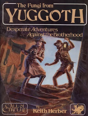 I was reminded of this recently when I re-read Keith Herber's eight-chapter campaign, The Fungi from Yuggoth. First published in 1984, the book carries the subtitle "Desperate Adventures Against the Brotherhood." This is both a reference to its primary antagonists, the Brotherhood of the Beast, and a signal that, like Shadows of Yog-Sothoth before it, The Fungi from Yuggoth is more of a Mythos-tinged Republic serial than a subtle evocation of Lovecraft's cosmicism. I reiterate: this is no criticism. However, I feel it's important to deflate the all-too-common pretension that Call of Cthulhu has ever been a particularly faithful adaptation of the worldview of Lovecraft's tales to the roleplaying medium, as products like this one make clear.