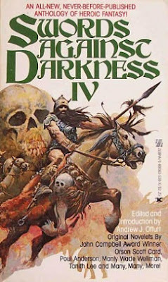 1979 saw the publication of not one but two different stories of Kardios of Atlantis by Manly Wade Wellman: "The Seeker in the Fortress" and "The Edge of the World." The former appeared in Gerald W. Page and Hank Reinhardt's Heroic Worlds anthology, while the latter graced the pages of the fourth (and penultimate) entry in Andrew J. Offutt's long-running Swords Against Darkness series. Kardios had appeared in every previous volume of Swords Against Darkness, so it's hardly surprising he'd turn up there again.