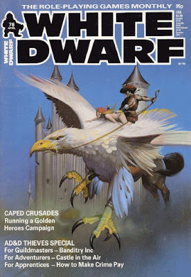 Ian Marsh's editorial notes that the "unannounced demise" of many long-running columns in WD, such as "Starbase" for Traveller, "Heroes & Villains" for superhero gaming, "Crawling Chaos" for Call of Cthulhu, "Rune Rites" for RuneQuest, and, most significantly, "Fiend Factory," a staple of the magazine practically since its inception. Marsh claims that, "with the greater variety of popular games on the market, having a department for each is impractical, and indeed restricts the content of the magazine." Future issues would include articles according to different metrics, such as themes. Issue #76 is the first example of this, focusing as it does on thieves.