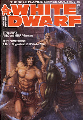 Issue #73 of White Dwarf (January 1986) features a cover by Lee Gibbons, an artist whose work I recall from various Call of Cthulhu products over the years. Inside, Ian Livingstone boasts of the fact that the UK pharmacy chain, Boots, has "decided to stock role-playing games, Citadel miniatures, and Fighting Fantasy books." He sees this as a major victory that will help "dispel the illusion of [the hobby's] being a weirdos' cult."