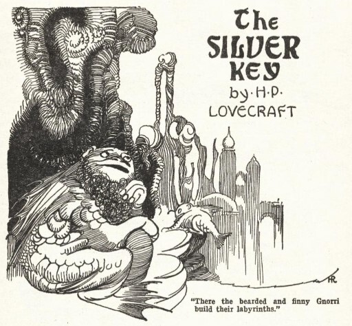 Though the covers of Weird Tales are usually more well remembered by history (for obvious reasons), it should be remembered that most of the stories published within the Unique Magazine had at least one accompanying illustration. So it is with H.P. Lovecraft's "The Silver Key," which featured this piece of artwork by Hugh Rankin.