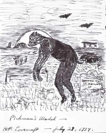 (I feel compelled to add Lovecraft's own drawing of a ghoul, which he drew in 1934, years after the publication of "Pickman's Model." I find it strangely charming.)