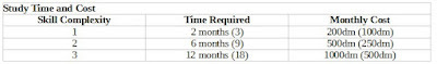 The time and cost necessary to learn a new skill depend on its complexity.