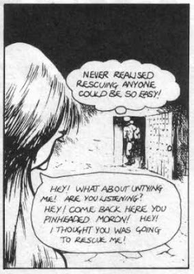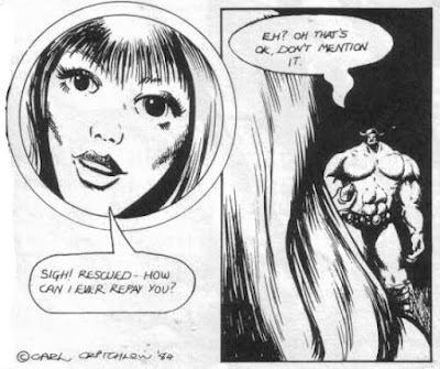 "Don't Touch That Dial!" by Phil Hine is an odd little article, in that it's ostensibly about the introduction of high technology into a D&D but is in reality simply about the introduction of two specific types of high technology: gunpowder and mechanical flight via ornithopters. The former is a perennial topic of interest to fantasy gamers, while the latter seems to stem largely from Moorcock's Runestaff series and Herbert's Dune. It's a mostly forgettable article, much like "The Psytron!" by Carol Hutchins, which reviews a 48K Spectrum game of the same name. I say that not because the game in question is a bad one – the reviewer gives it 9 out of 10 – but because it doesn't seem to have been a particularly successful or influential product. I'd much rather read the latest installments of "Thrud the Barbarian," "The Travellers," and "Gobbledigook," all of which I enjoyed more.