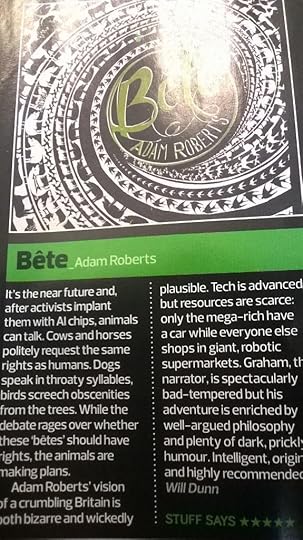 That most excellent critic Niall Alexander has reviewed Bête (in slightly spoilery mode) over at Tor.com. Snip: "This, then, is not some novelty novel, but a fully-fledged philosophical fable for our age. Affectionate albeit barbed, far-fetched yet oddly plausible, and dark, but not without a certain spark, Bête is as smart and as satisfying and as challenging as anything any of the Adam Robertses have written."