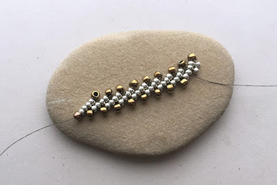 The beads accentuate the slightly asymmetrical nature of the stitch by alternating the color on each side between red and gold. Here's how to make your own.