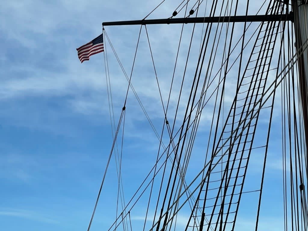 An American flag in the rigging of “Old Ironsides,” the U.S.S. Constitution.