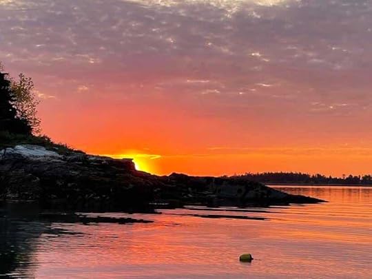 I’ve been traveling, and Buddy took out the camera in my absence. This is the view as he left the harbor one morning this week— that’s his brother’s buoy in the foreground.