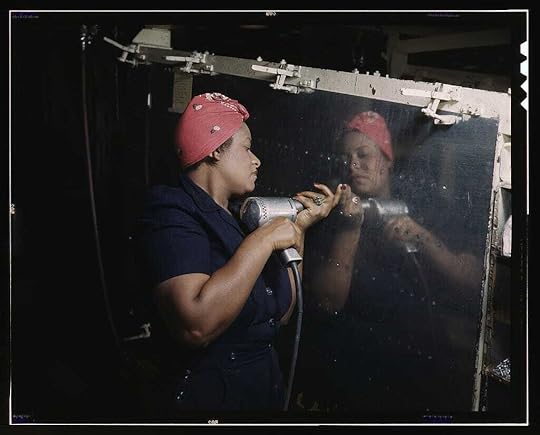 [Alfred T. Palmer, Operating a hand drill at Vultee-Nashville, woman is working on a "Vengeance" dive bomber, Tennessee, 1943, Farm Security Administration/Office of War Information Color Photographs, Library of Congress]