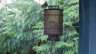 It's hard to tell, but summer arrived this morning--officially, as today marks Solstice. The temp is still coolish, but not quite as "June-uaryish" as it's been the last while. So maybe it will even feel like summer soon.The birds who'd built their nest inside the little lantern have even headed off for summery skies. We'd worried that the babies might not be able to fly high enough to get out of the enclosure, but presto--they did it!