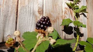 Well, sheesh. I thought I'd taken a great photo of the very first blackberry of the season. Only now that I look at it, I see that it's fuzzy.