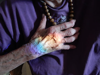 The photo I selected for today is of a friend who is a great inspiration to me -- for her simple lifestyle, her love of nature, and her acceptance of everyone. It's a true bonus that a rainbow, long a symbol of both hope and peace, as well as its contemporary meaning of acceptance of sexual diversity, managed to appear in this shot of her beautiful hand.