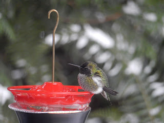 I'm not sure how something as small as a hummingbird gets by when it's below freezing outdoors. It's clear that fluffing out their feathers must do something -- their own little 'puffy coats' I guess.