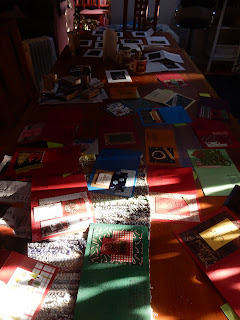 One of the most fun parts of my big preparations is the making of the cards. This is a tradition, probably ten years on now, where my friend and I sit across from each other at the table (piled with our crafty supplies) and create our one-of-a-kind greeting cards.