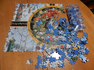 And a small kindness at that. It's an idea that was suggested to me by my friend who makes Christmas cards with me, and who also (like me) loves doing jigsaw puzzles. We often lend each other puzzles back and forth and she came up with a suggestion that might sound like 'cheating' to some, but made good sense to both of us. When you take apart a puzzle, bag up the edge pieces separately from the rest. In other words, you're giving the other person the kindness of a head start on completing the puzzle!