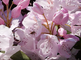And really, it would be hard to find a prettier place to work than in the heart of a full-blown rhododendron blossom.