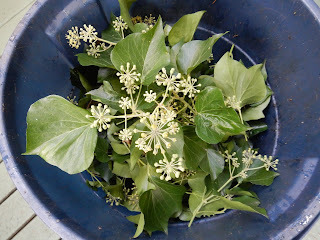 Maybe the least pleasant (though one of the most necessary) is pruning the English ivy that drapes itself along the fence between us and the neighbour. It's thick enough that it helps provide a wall of privacy, but because it's an invasive species, it has to be discouraged -- and definitely kept off of the trees along that same border. Its pollen is horrific (even as I type this, my nose has started itching). A few years ago I did a post where I was dressed in basically a homemade Hazmat suit -- all so I could do a pre-autumn chop.