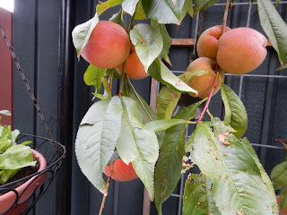 Even though the peaches aren't quite ripe enough to pick, today no longer feels like summer. It's not even a matter of temperature, it's something about this afternoon's light. Maybe it's the angle of the sunlight dappling the boards of the deck -- whatever the cause, it makes me realize that autumn's on its way. The blackberries are thick on the vines, and we're still getting a few raspberries for our desserts. The plums down at Lee Street, where we're always encouraged to pick, are just about ready too. Another year with a bounteous supply of fruits.
