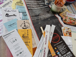 In 2009, I started a blog that answered that question every night for a year. That first post wasn't very exciting, though over the year (and beyond) I like to think it got better. Heck, how many people do you know who could tell you what they had for supper twelve years ago (even if they are off by a day)? The post for May 17th seemed more appropriate (and looked more delicious too, though maybe I'm just hungry). I'll admit that I've spent a while poking around there, looking for inspiration perhaps, and have to say that one of the days most important to me is a meal that looks, at first glance, pretty ordinary, though the story that goes with it is anything but. Though I digress. Today's post is the result of a full-page ad I saw in yesterday's Globe and Mail, the Saturday paper I like to save for reading on Sunday. The ad reminds us of how the restrictions required during these pandemic times have made things so difficult for anyone in the restaurant trade (so I suppose this is my version of a 'Restau-Rant').