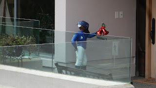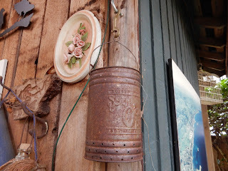 Once again, the birds have taken up house in one of the lanterns that hang outside. Luckily, there wasn't a candle in there, or there wouldn't have been room for the three little eggs currently inside.