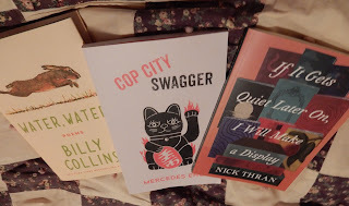 One of my plans for this month is to give away a book of poetry every day in April. For one thing, it's a good way to cull my (admittedly too large) collection of these books. After all, two bookcases full probably means more books of poems than I will be able to reread in the remainder of my life.